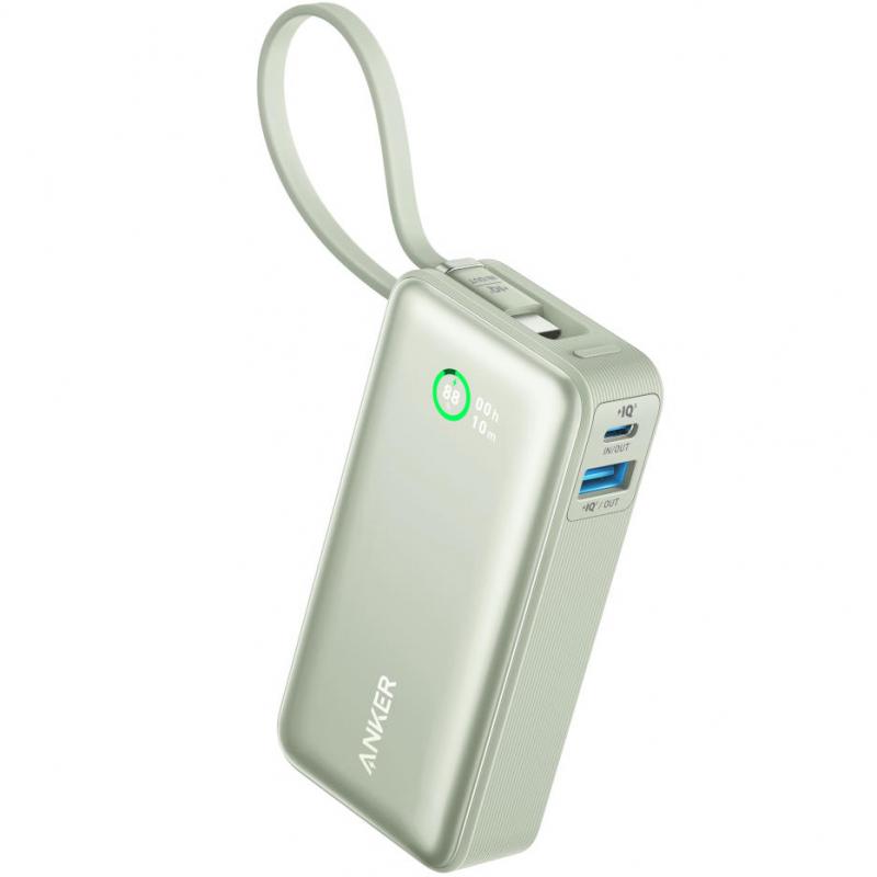 Anker Nano 545 10000mAh Powerbank med USB-C-kabel - 30W - Grøn