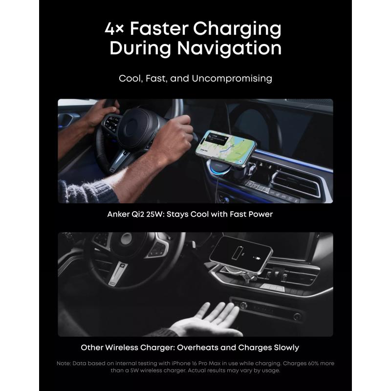 Anker Prime MagSafe Car Mount Charger er en førsteklasses trådløs biloplader, der er designet til hurtigere, køligere og mere sikker opladning på farten. Med Qi2 25W-certificering, stærk magnetisk justering og avanceret TEC-aktiv køling giver den kompatible iPhone-brugere en mere effektiv opladningsoplevelse i bilen, samtidig med at telefonen holdes fast monteret til navigation, opkald og daglig kørsel.