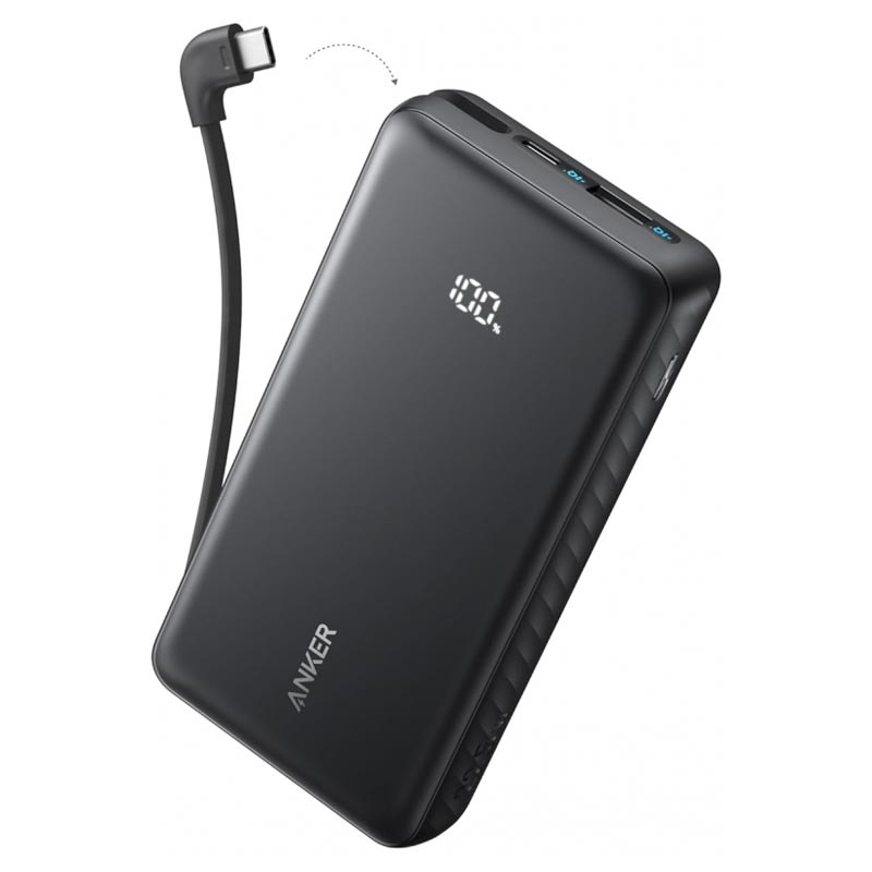 Anker Zolo 10000mAh powerbank - 22.5W bærbar oplader med indbygget USB-C-kabel, QC- og PD-hurtigopladning