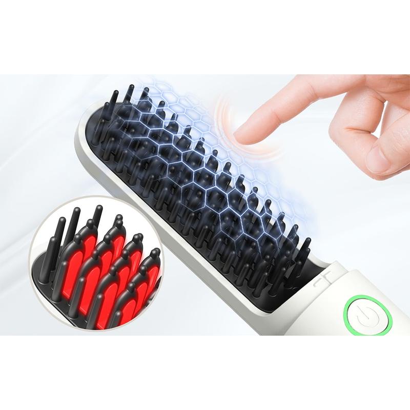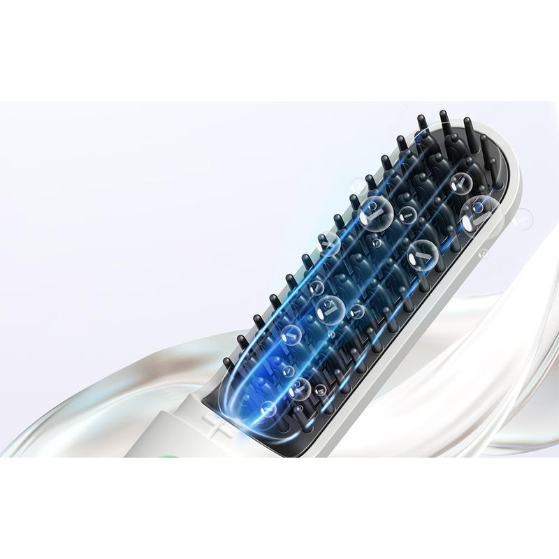 Tæm morgenkrus, og tilfør naturlig glans i et enkelt strøg. Denne trådløse børste frigiver en strøm af negative ioner, mens dens keramiske varmetænder glider gennem hårstråene og efterlader håret glat, fri for statisk elektricitet og blødt at røre ved - uanset om du er hjemme, i fitnesscentrets omklædningsrum eller på vej til toget.
