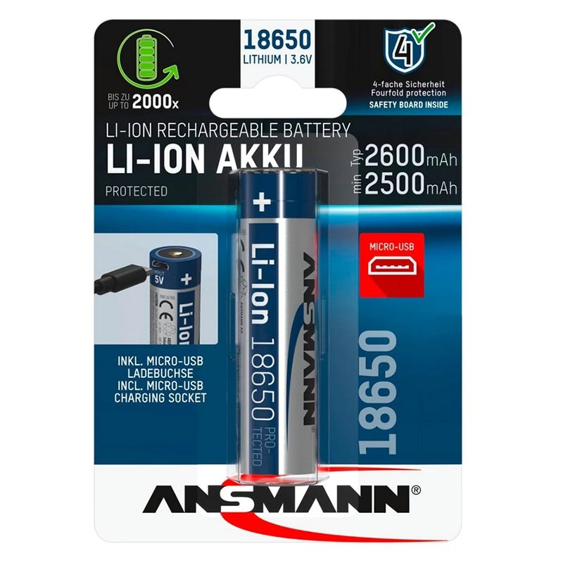 Ansmann MicroUSB Genopladeligt 18650 Batteri - 2600mAh