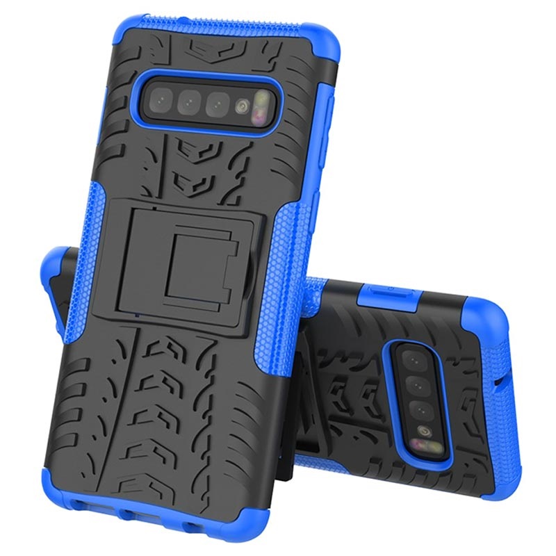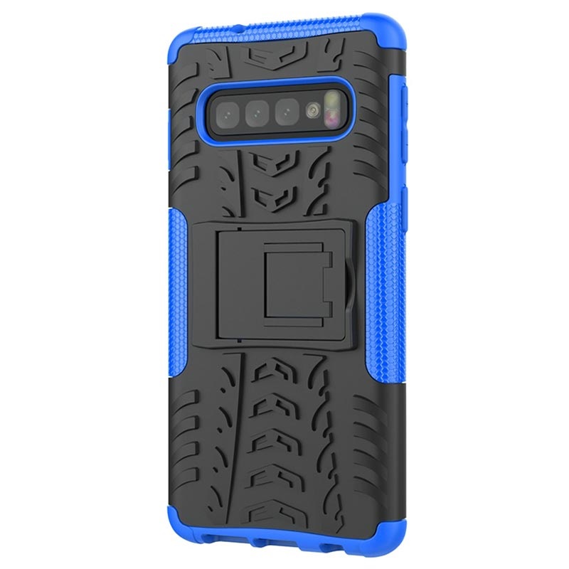 Anti-Slip Samsung Galaxy S10+ Hybrid Cover med Stand - Blå / Sort
