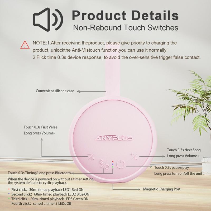AnyPlus bærbar hvid støjmaskine til babysøvn / søvnhjælp lydmaskine med Bluetooth-højttaler