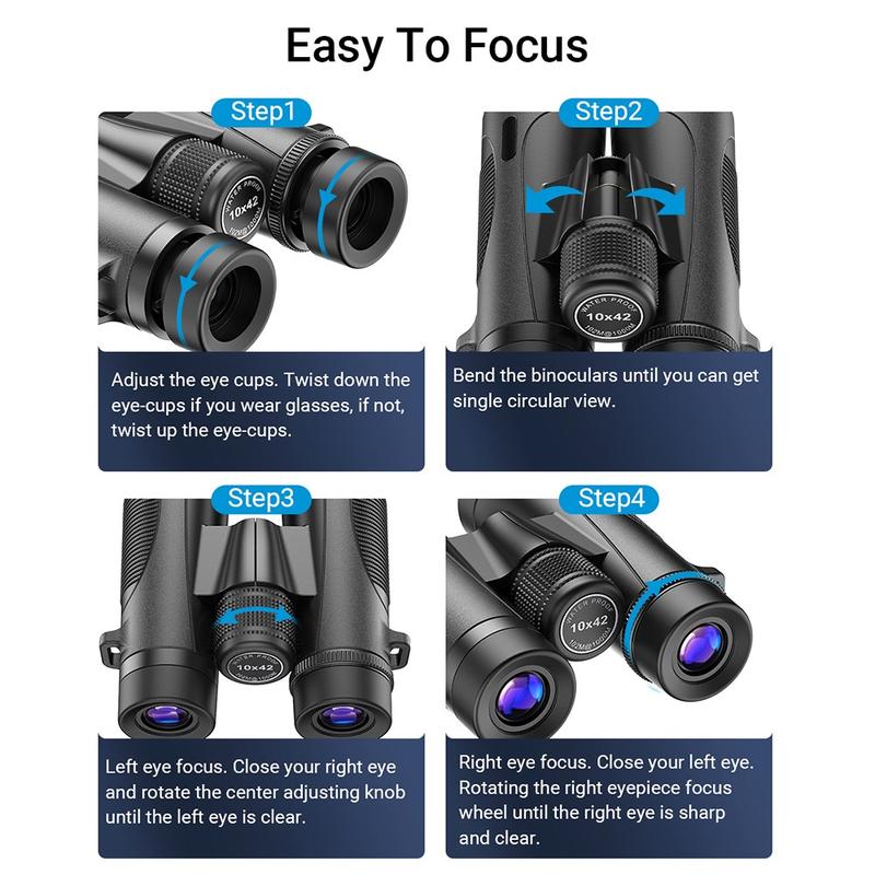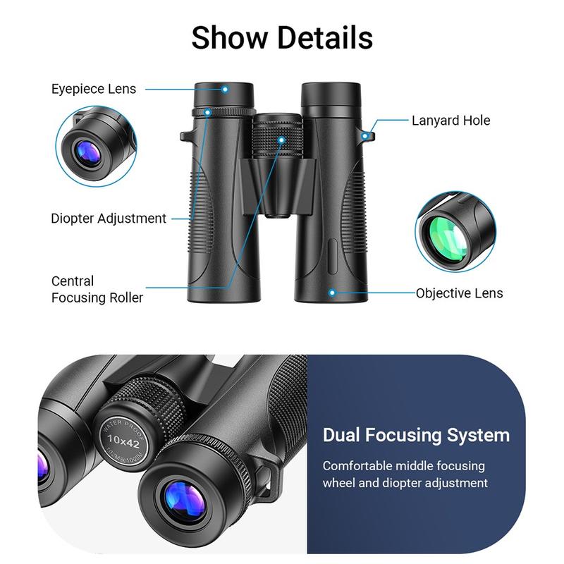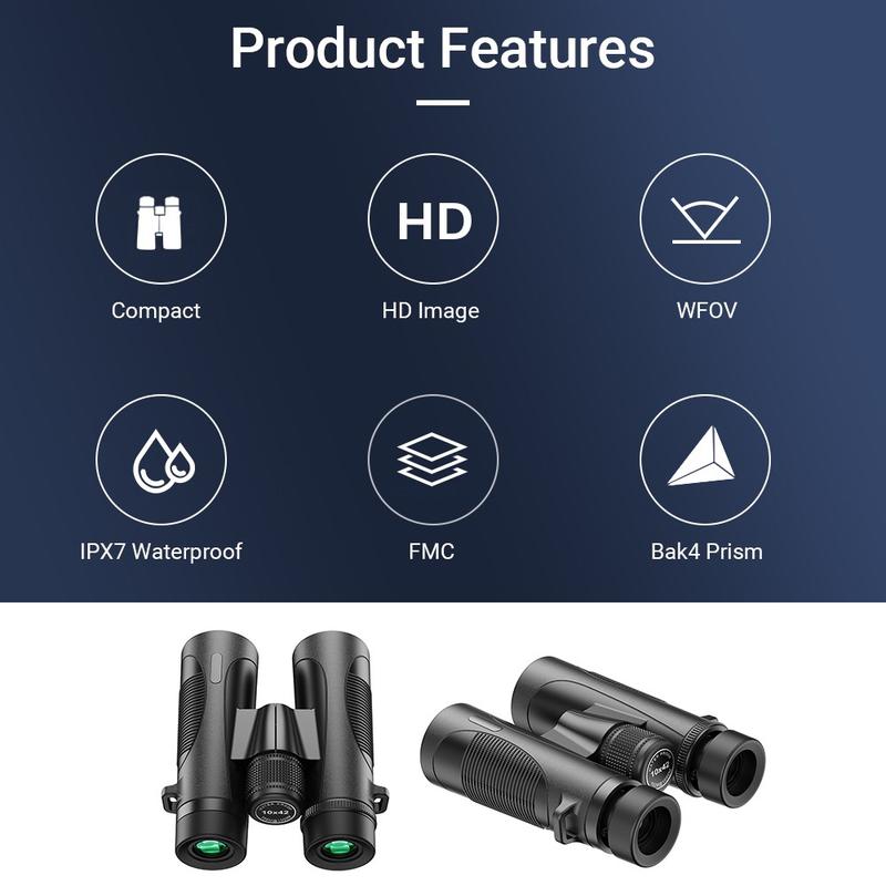 Apexel 10x42 HD Vandtæt kikkert - FMC Flerlagsbelagt, BAK4 Prisme, Syn i Svagt Lys til fuglekiggeri, jagt og udendørs brug