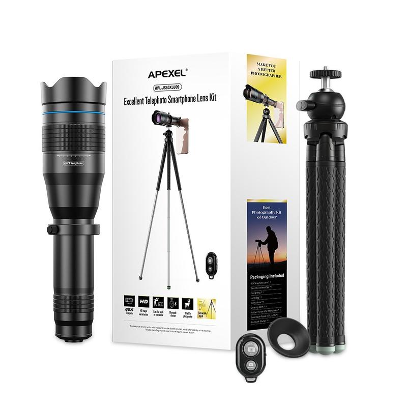 APEXEL APL-JS60XJJ09 60X monokulært teleskop mobil telelinse + stativ til mobiltelefon