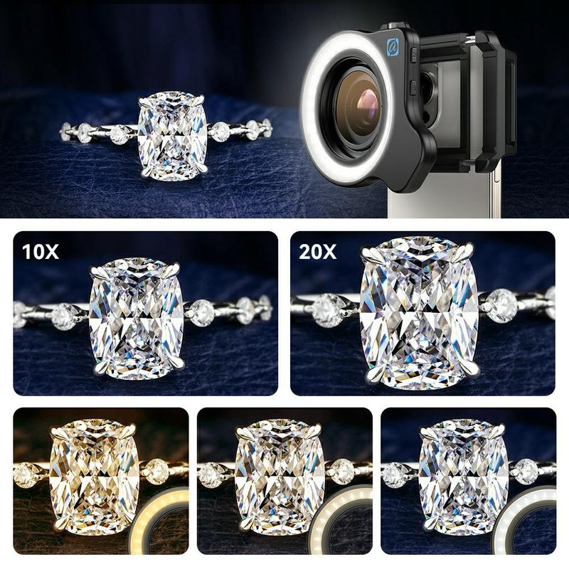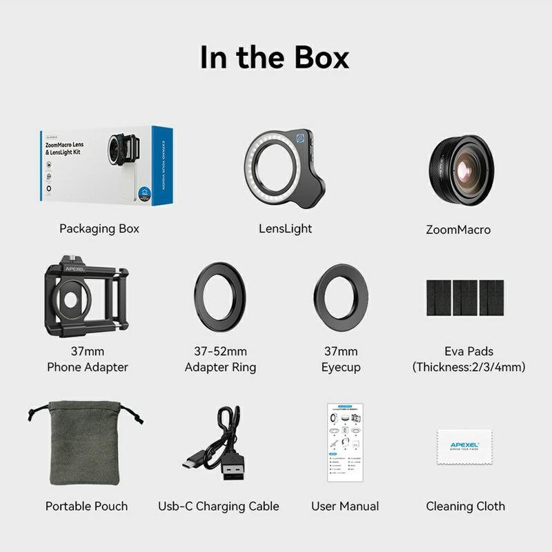 Indfang knivskarpe detaljer på insekter, kronblade eller printplader uden et stort DSLR. Apexels professionelle glas er kombineret med en 2-i-1 gevindmontering og et integreret, genopladeligt ringlys, så du kan tage nærbilleder i museumskvalitet direkte fra din smartphone - når som helst og hvor som helst.