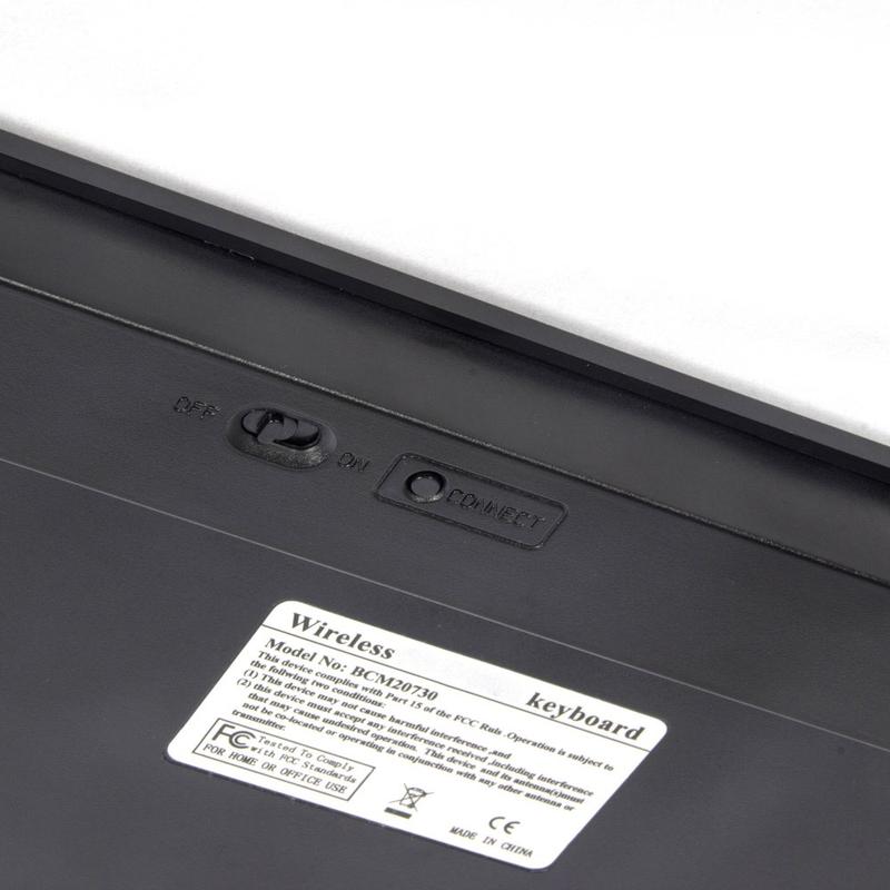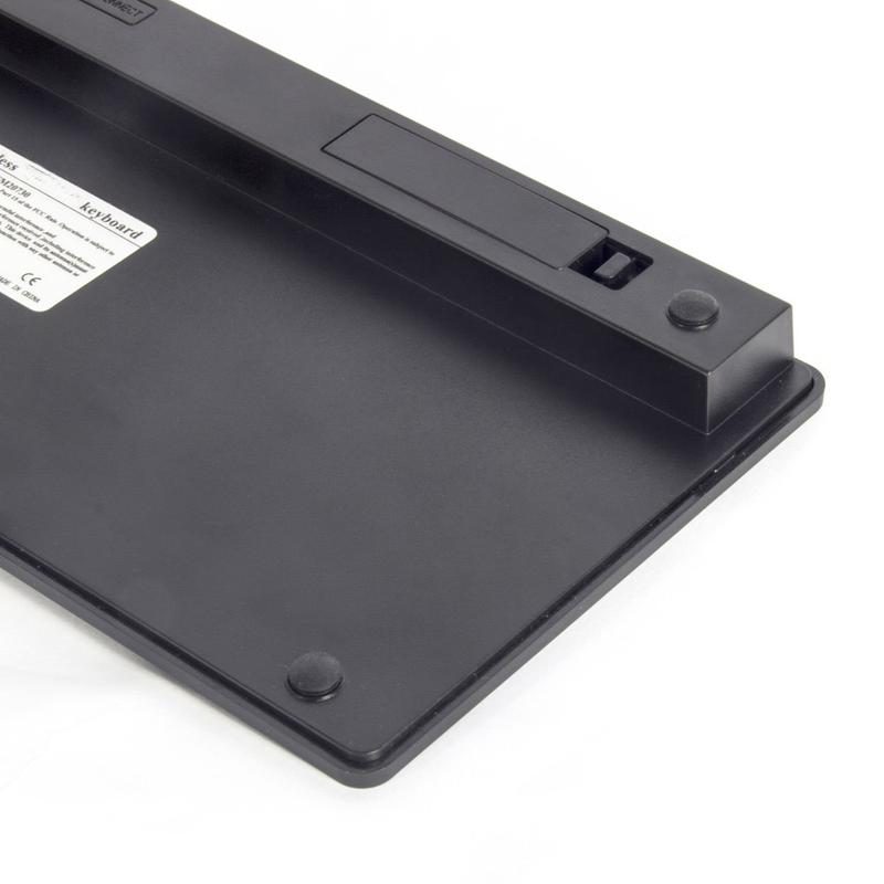 Tastaturet bruger 2 × AA-batterier (medfølger ikke), hvilket giver lang batterilevetid uden behov for opladningskabler.