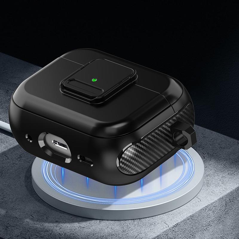 Apple AirPods Pro 2 magnetisk opladende øretelefon TPU-etui med spænde og karabinhage - sort