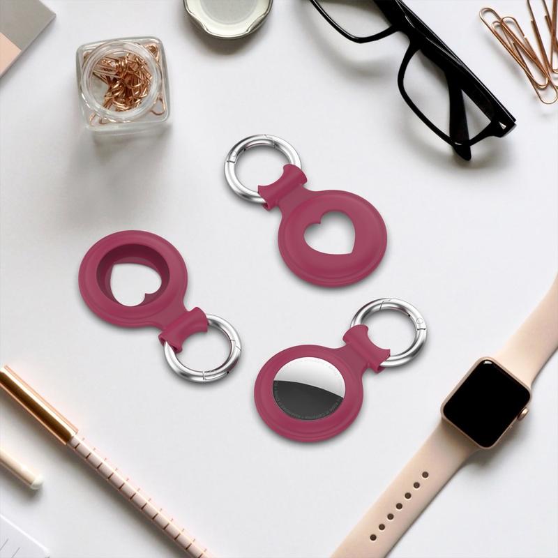 Apple AirTag 1/2 silikoneetui med hjertedesign - vinrød