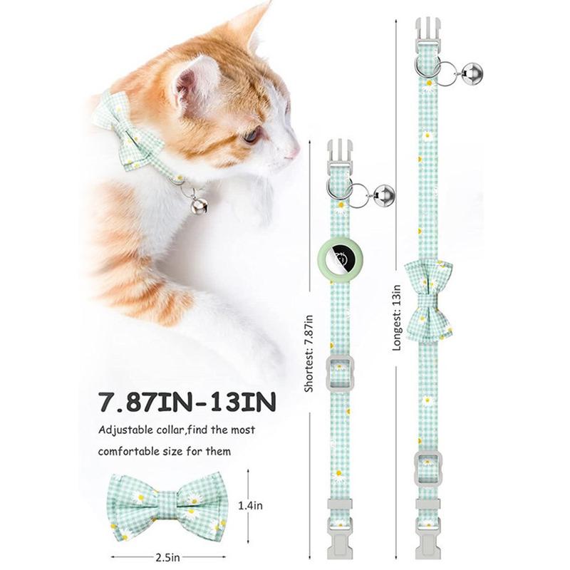 Apple AirTag 1/2 silikoneetui med kæledyrshalsbånd og sløjfe i margueritmønster - Grøn