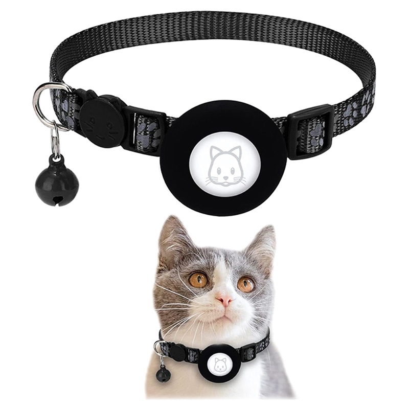 Apple AirTag 1/2 Silikone Cover med Reflekterende Kæledyrshalsbånd - Sort