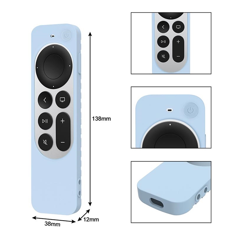 Det skridsikre, stødsikre design omslutter Siri-fjernbetjeningen sikkert fra alle vinkler og hjælper med at forhindre utilsigtede fald eller overfladeskader. Udskæringer er præcist placeret til den berøringsaktiverede klikplade, porte og knapper, hvilket sikrer fuld funktionalitet uden forhindringer.