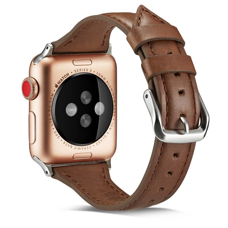Slim Læder Rem til Apple Watch Series 11, Apple Watch Series 10, Apple Watch Series 9, Apple Watch Series 8, Apple Watch SE 3, Apple Watch SE (2022), Apple Watch Series 7, Apple Watch SE, Apple Watch Serie 6, Apple Watch Serie 5, Apple Watch Serie 4, Apple Watch Serie 3, Apple Watch Serie 2, Apple Watch Serie 1