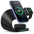 3-i-1 Bærbar Trådløs Ladestation - Apple Watch, iPhone, AirPods - Sort