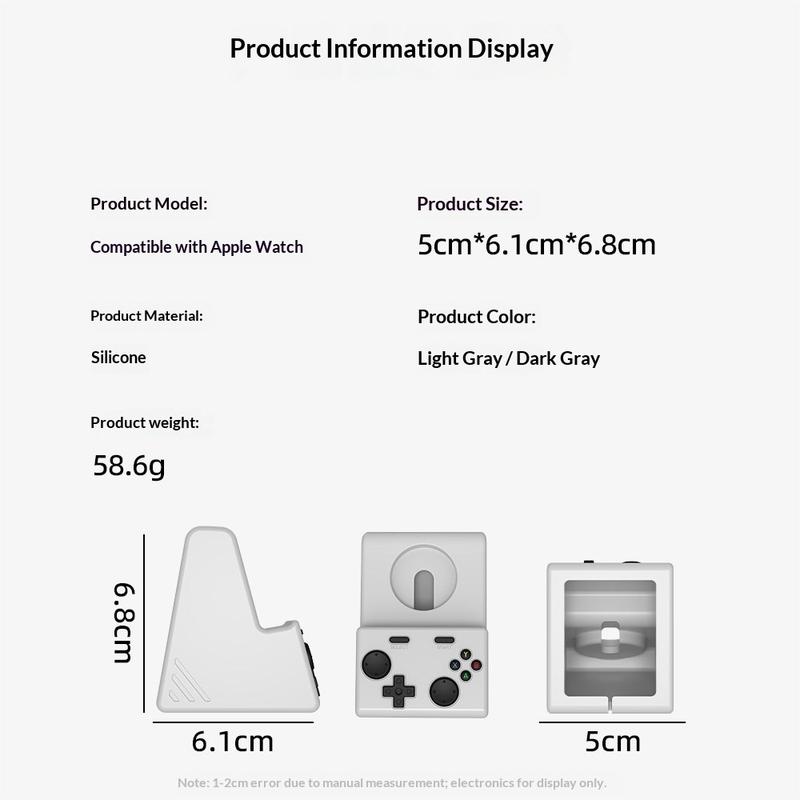 Giv dit natbord eller skrivebord et sjovt og pænt løft med denne opladningsholder til Apple Watch i stil med en spilkonsol. Den er lavet af blødt, ridsefast silikone, holder dit ur sikkert på plads under opladning og hjælper med at holde orden takket være den indbyggede kabelopbevaring nedenunder. Den kompakte størrelse gør den nem at flytte mellem hjem, kontor eller rejser, mens det minimalistiske design passer naturligt ind i moderne interiører.