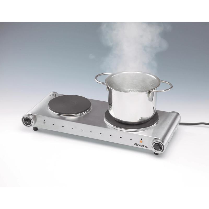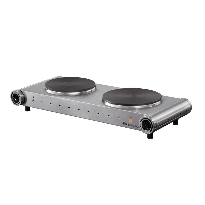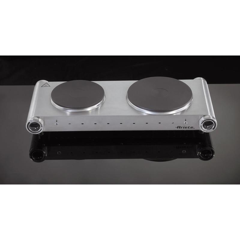 Ariete Double Hot Plate er en praktisk og kraftfuld løsning til madlavning uden for hjemmet. Med to støbejernsplader i topkvalitet og en samlet effekt på 2500 W koger den hurtigt vand og holder maden varm, selv når den er slukket. Denne dobbelte kogeplade i rustfrit stål er perfekt til rejser, camping eller kontorbrug og har temperaturjusteringshjul til præcis styring af madlavningen.