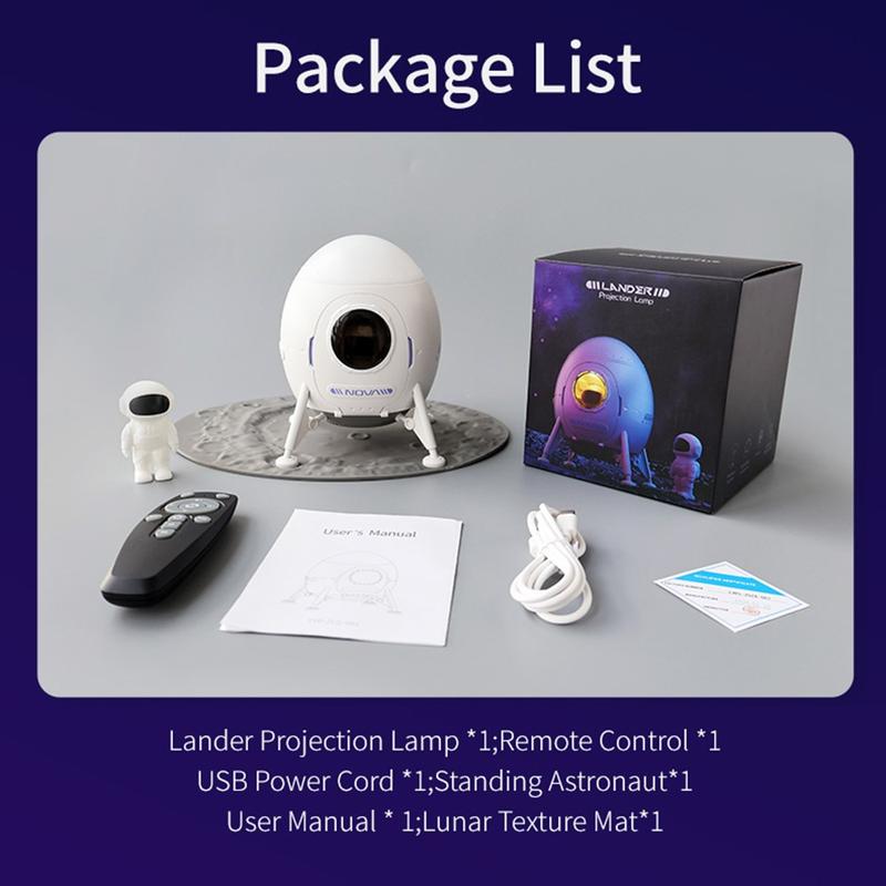 Astronaut Space Landing Starry Sky Nebula Projection Lamp kombinerer kreativitet, stil og funktionalitet, hvilket gør den til det perfekte tilbehør til at tilføje et strejf af kosmisk charme til ethvert rum. Med justerbare lyseffekter og et unikt design er den en fantastisk tilføjelse til ethvert hjem.