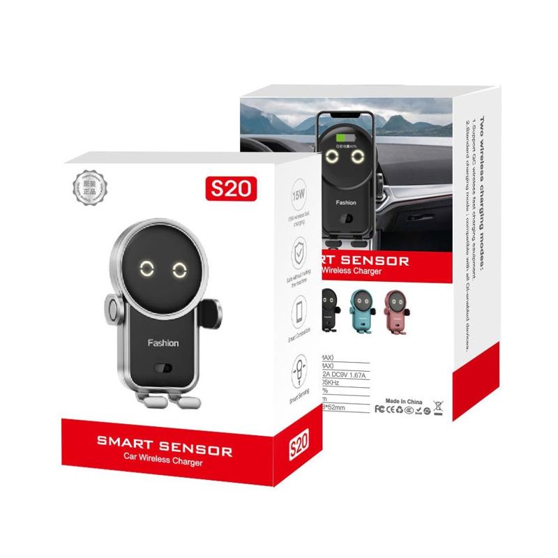 S20 Cute Astronaut Design Trådløs Biloplader 15W Hurtigopladning Biltelefonholder Smart IR-sensor Auto-Clamping Telefonholder til billuftventil