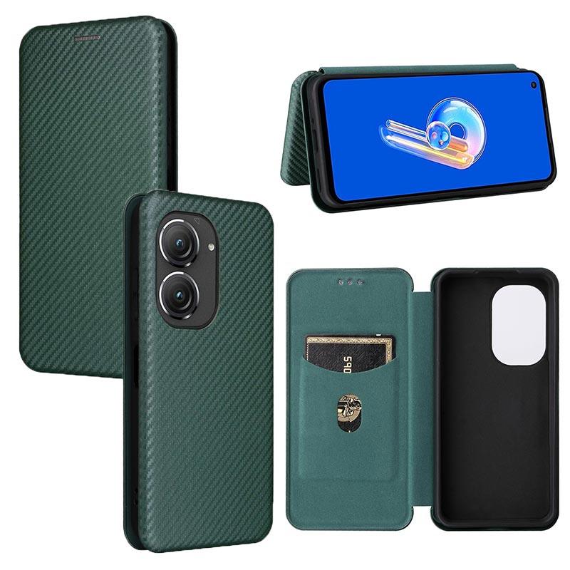 Asus Zenfone 9 Flip Cover - Karbonfiber - Grøn