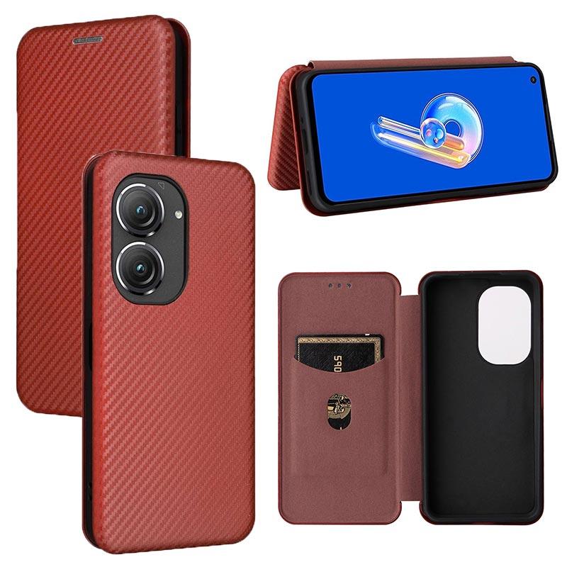 Asus Zenfone 9 Flip Cover - Karbonfiber - Brun