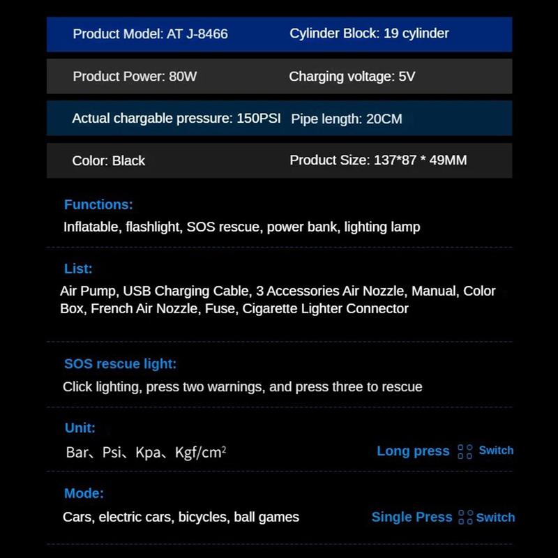 ATJ-8466 Bærbar dækpumpe og powerbank - tredobbelt redning i én hånd