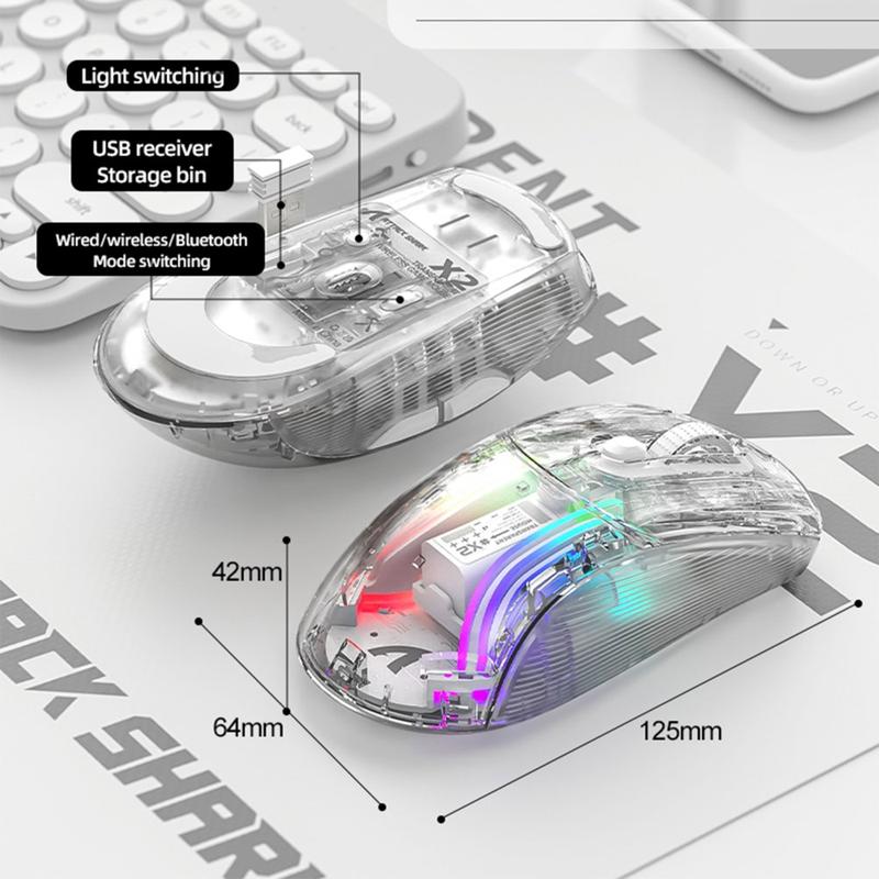 Attack Shark X2 Transparent trådløs mus med RGB og 5 DPI-tilstande