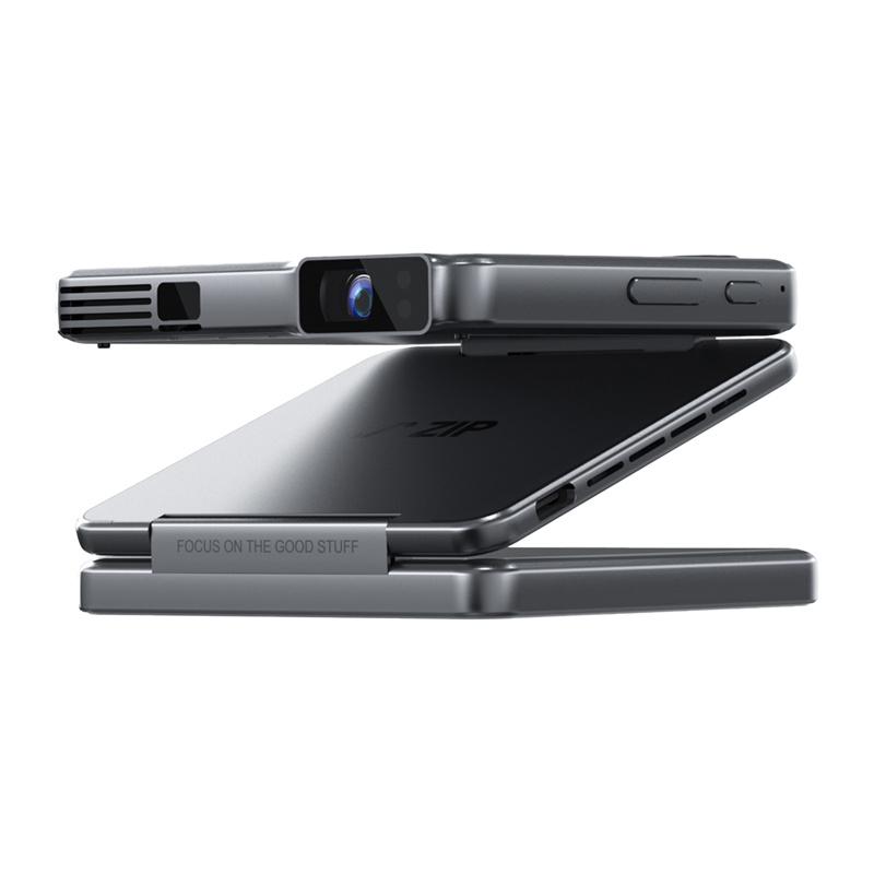 Aurzen ZIP Tri-Fold bærbar miniprojektor - DLP 720p, 100 ANSI-lumen, 5000 mAh batteri, lodret fuldskærm, øjeblikkelig spejling