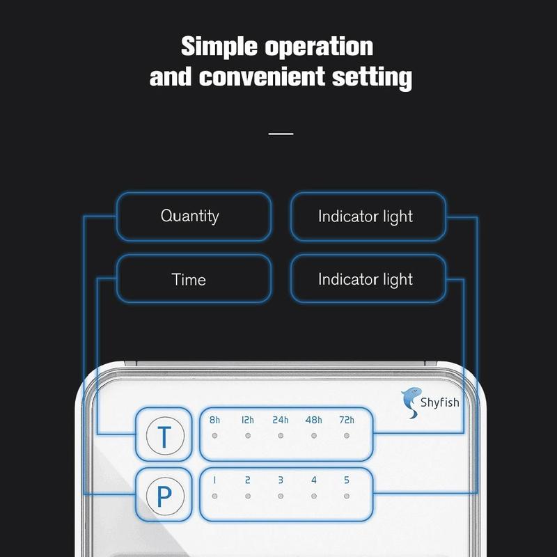 - Programmerbar timer: Giver mulighed for at indstille specifikke fodringstider, hvilket sikrer ensartet og rettidig næring til dine fisk.