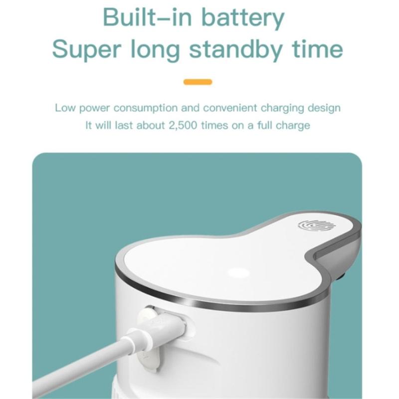 Dispenseren er bygget med et genopladeligt batteri på 500 mAh og kan køre i månedsvis på en enkelt opladning. Oplad nemt via det medfølgende USB-kabel.