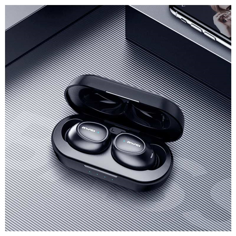 Awei T16 Vandafvisende TWS Høretelefoner med Mikrofon & Opladningsboks - Bluetooth 5.0, IPX4