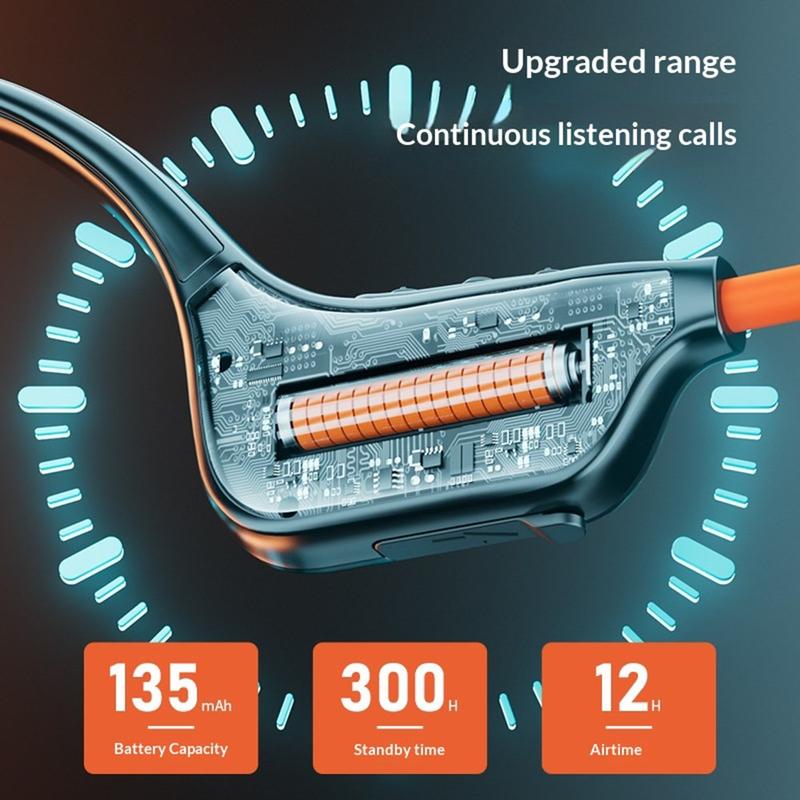 Et indbygget 135 mAh-batteri giver pålidelig ydeevne med op til 8 timers musikafspilning, op til 12 timers taletid og op til 300 timers standbytid. Uanset om du tager imod opkald, lytter til podcasts eller holder dig aktiv udendørs, er disse åbne øretelefoner designet til praktisk komfort og frihed.