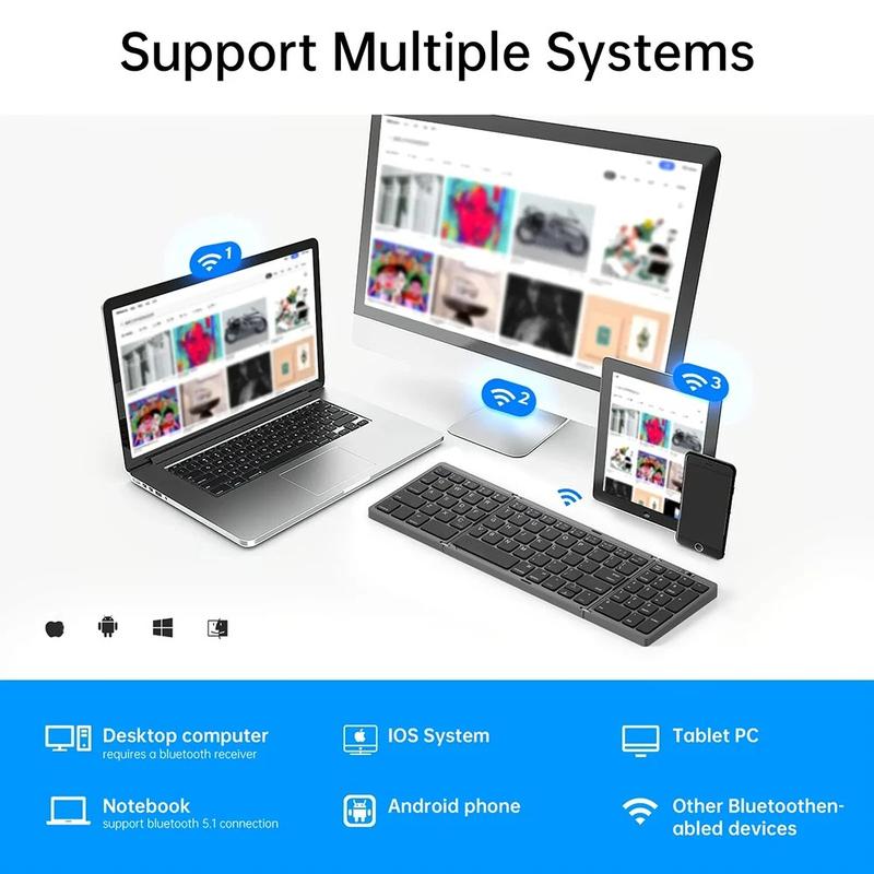 Trefoldede Bluetooth-tastaturer er populære, fordi de kombinerer bedre bærbarhed med en større skriveflade end mange kompakte minitastaturer. Modeller med numerisk tastatur er især nyttige til produktivitetsopgaver, da indtastning af tal kan foregå meget hurtigere og mere komfortabelt. Bluetooth-tastaturer til flere enheder bliver også stadig mere almindelige, da flere mennesker arbejder på tværs af telefoner, tablets og bærbare computere i løbet af samme dag. Sammenklappelige designs med magnetisk lukning hjælper med at beskytte tastaturet under transport og gør dem nemmere at have med i mindre tasker.
