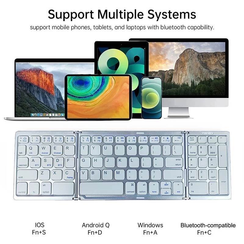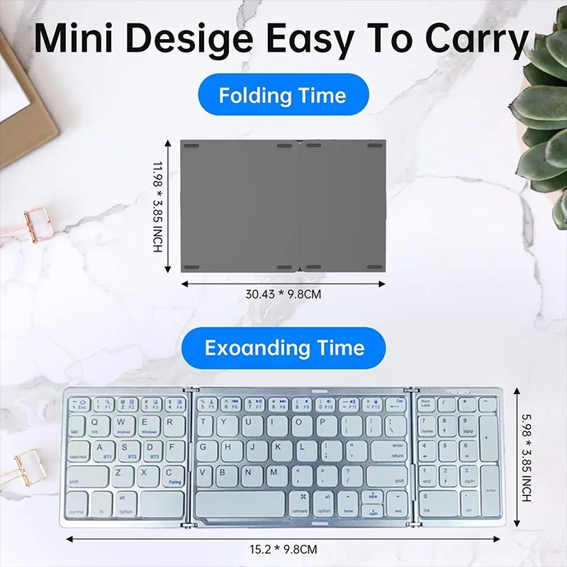 Det smarte tredobbelte design gør det nemt at have med i en taske, rygsæk eller laptop-sleeve, mens den magnetiske lukning hjælper med at holde det sikkert foldet sammen under transport. Med understøttelse af op til tre Bluetooth-enheder kan du skifte problemfrit mellem din telefon, tablet og bærbare computer ved hjælp af de dedikerede BT1-, BT2- og BT3-taster. Dette gør tastaturet særligt nyttigt til multitasking på tværs af forskellige enheder og operativsystemer.