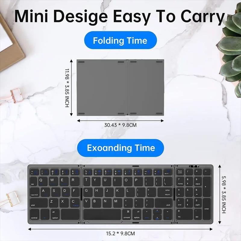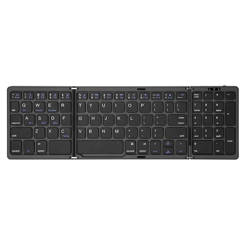 B089 Bærbart Bluetooth-tastatur med tre folde og numerisk tastatur - trådløst tastatur med 81 taster til hjemmet, kontoret, tablets og mobiltelefoner