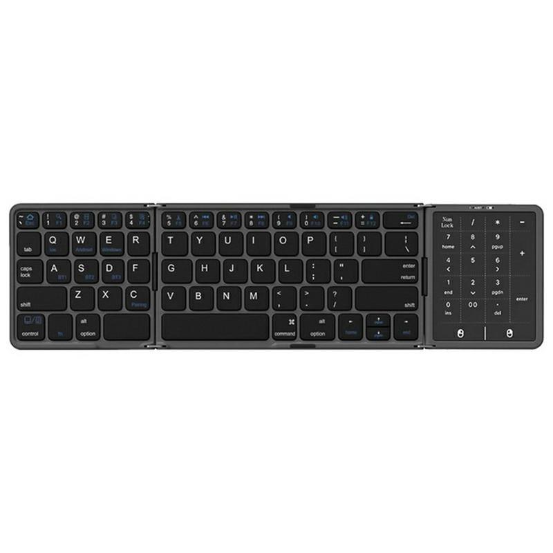 B089 ST Ultratyndt Bluetooth-tastatur med tre folde og smart trackpad / Bærbart trådløst tastatur til iOS, Android og Windows
