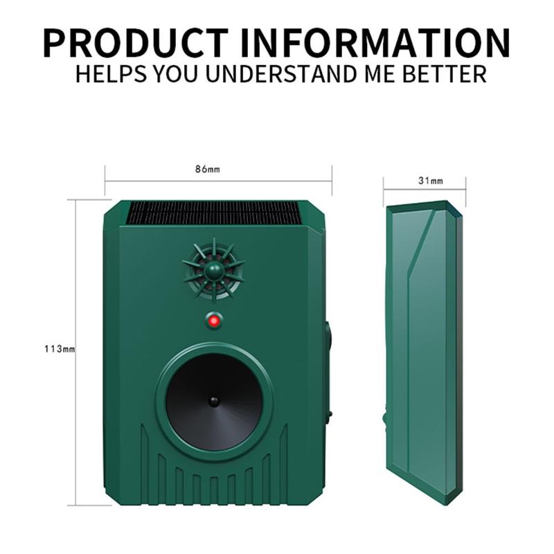 Denne ultralydsenhed er et kemikaliefrit, lugtfrit og kæledyrssikkert alternativ til skadelige pesticider, hvilket gør den velegnet til husholdninger, haver og miljøbevidste brugere.