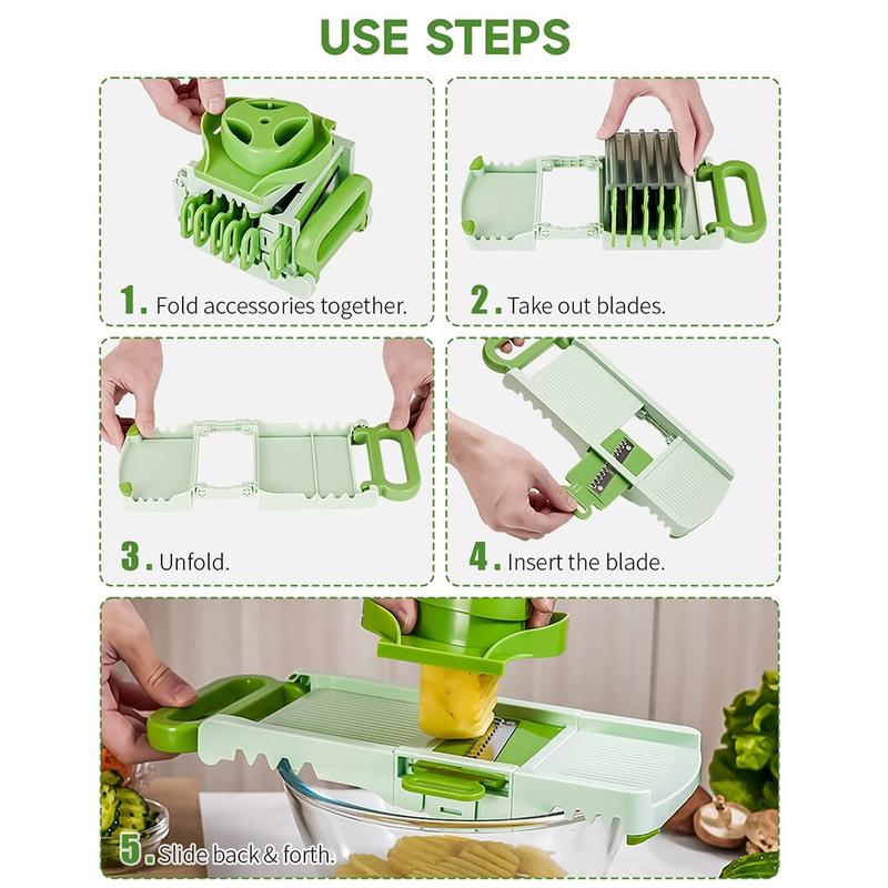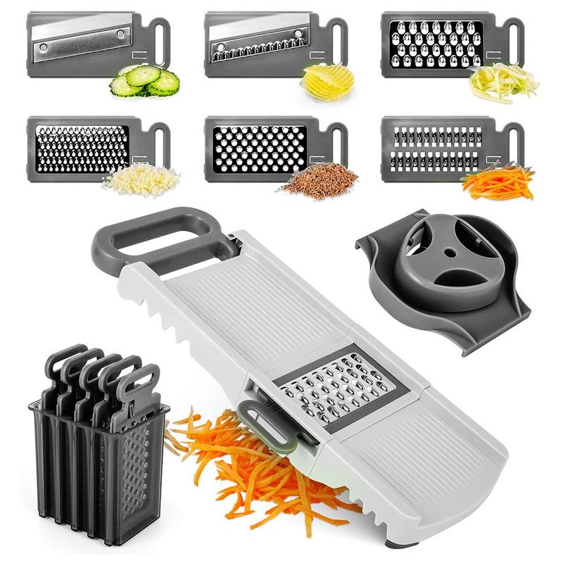 Dette mandolinjern erstatter flere køkkenredskaber med en kompakt, sammenklappelig enhed. Dens skarpe blade i rustfrit stål, holdbare konstruktion og enkle betjening gør den ideel til hjemmekokke, der ønsker hurtig, ensartet og sikker udskæring hver dag. Den er nem at rengøre, nem at opbevare og bygget til langvarig brug, så den er en pålidelig tilføjelse til ethvert køkken.