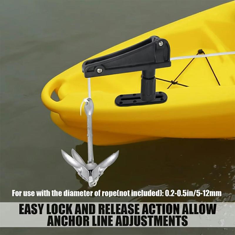 Bådankerbeslag med 360° drejelig rebholder og hurtigudløser til kajak, kano og småbåde