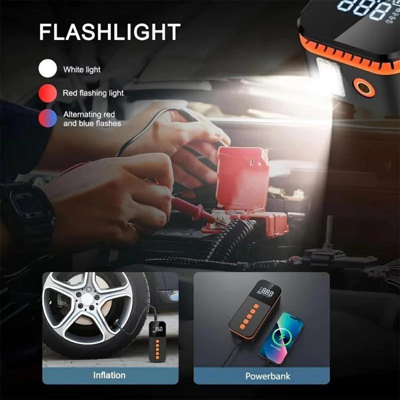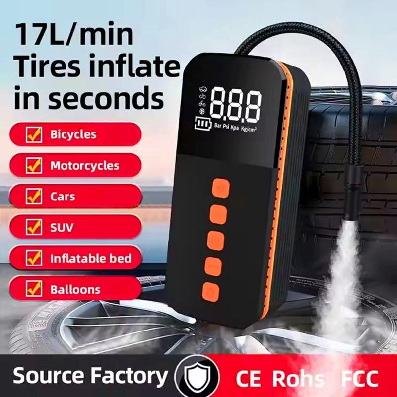 - Nødhjælp ved vejsiden: Pump dækkene hurtigt op, når du er strandet.