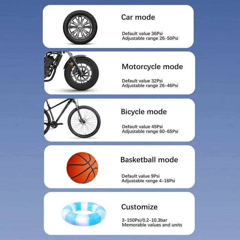 - Højtrykskraft: Pumper op til 150 PSI, velegnet til en lang række dækstørrelser.