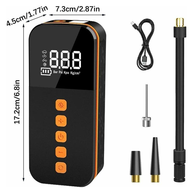 Bærbar pumpe til bildæk - trådløs elektrisk luftpumpe med digitalt display og LED-lys