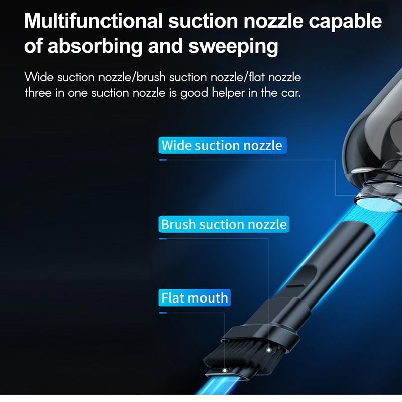 - Rengøring af bil: Fjern nemt krummer, støv og dyrehår fra sæder og gulvmåtter.