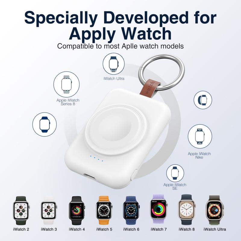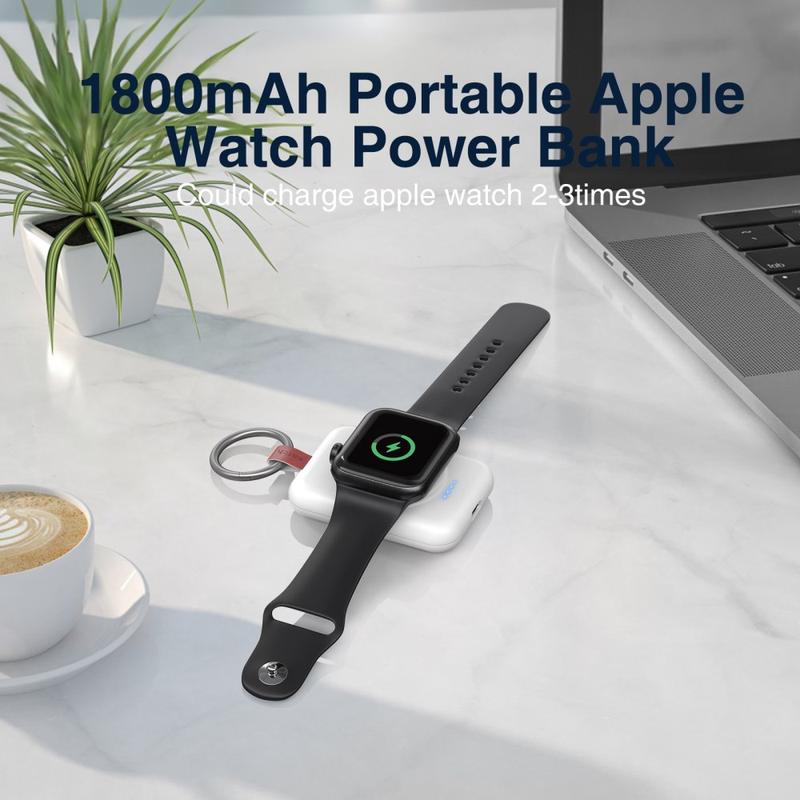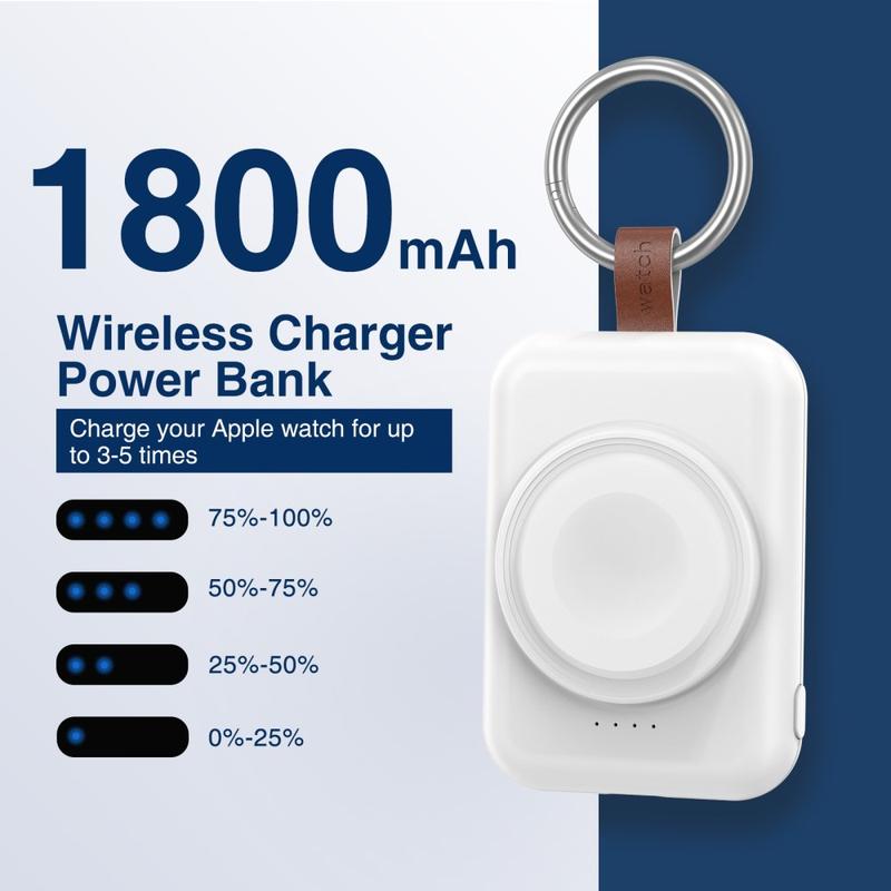 Hold dit Apple Watch opladet på farten med A-04 Portable Mini Wireless Charger. Denne kompakte 1800mAh powerbank har et praktisk ringspænde til nem fastgørelse, så dit smartwatch forbliver opladet under udendørs aktiviteter og rejser.