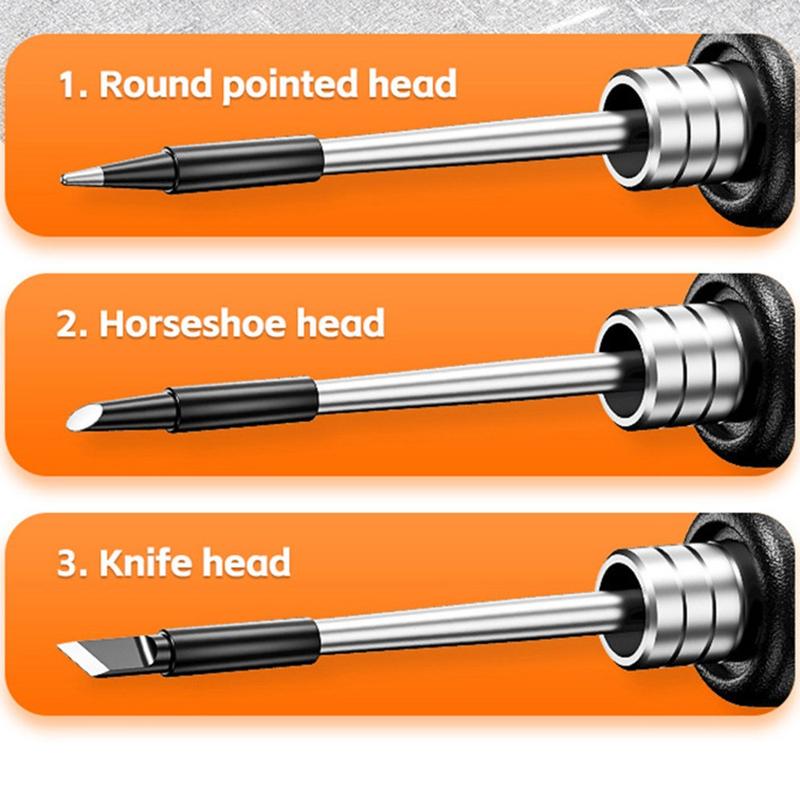 - Inkluderer tre udskiftelige spidser: rund spids, hestesko og kniv