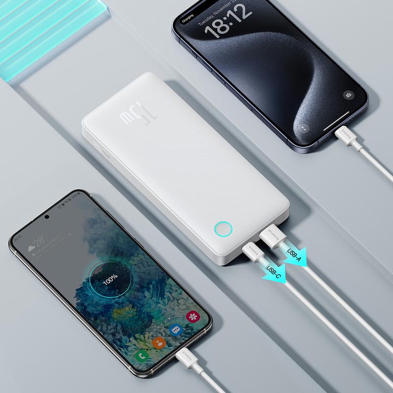 Det slanke 17 mm design gør den nem at have med i lommen, håndtasken, rygsækken eller laptop-tasken, mens 15W-opladningsudgangen hjælper med at oplade dine enheder hurtigere end standardopladning med lav effekt. Powerbanken er udstyret med både USB-C- og USB-A-porte, hvilket giver dig fleksible opladningsmuligheder for forskellige kabler og enheder. USB-C-porten fungerer også i begge retninger, så den kan bruges både til at oplade powerbanken og til at oplade dine enheder.