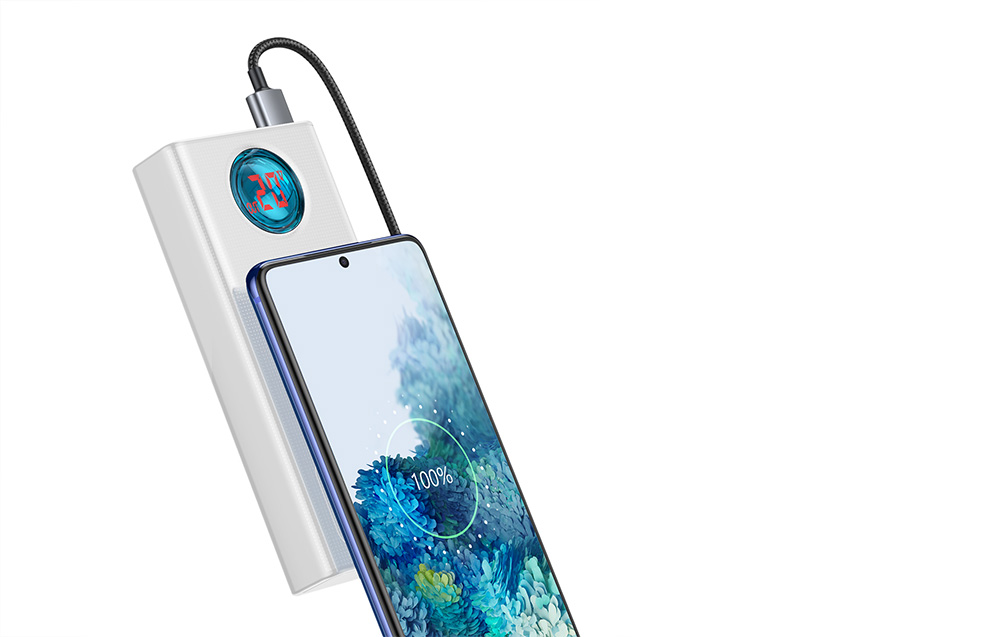 Med Baseus Amblight powerbank kan du oplade op til 5 enheder samtidigt, så du sparer tid. Desuden fungerer den med hurtigopladningsprotokoller som PD3.0, QC3.0, FCP, SCP osv. Det betyder, at du øjeblikkeligt kan forny energien på smartphones fra Apple, Huawei, Samsung, Xiaomi og mange andre. Resultatet er, at du kan oplade Samsung S20 Ultra på ca. 60 minutter.