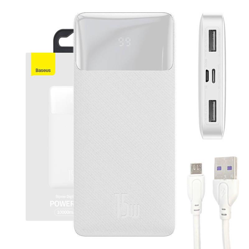 PowerBank Baseus Bipow 10000mAh, 2xUSB, USB-C, 15W (hvid)