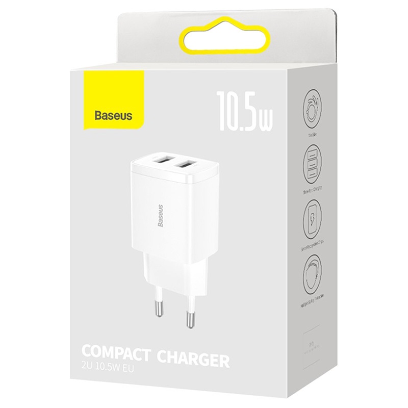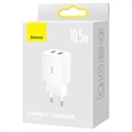 Baseus Compact Oplader med 2 USB-porte - 10.5W - Hvid