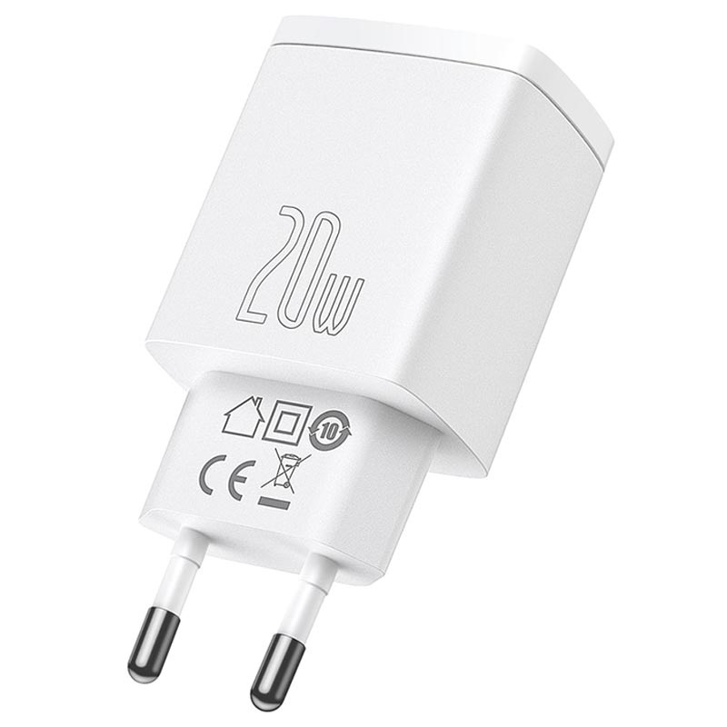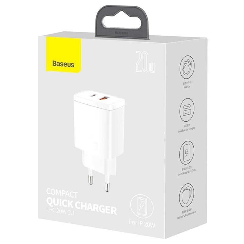 Baseus Compact Oplader 20W - USB-C, USB-A, QC3.0, PD3.0, Apple 2.4, BC 1.2 - EU-stik