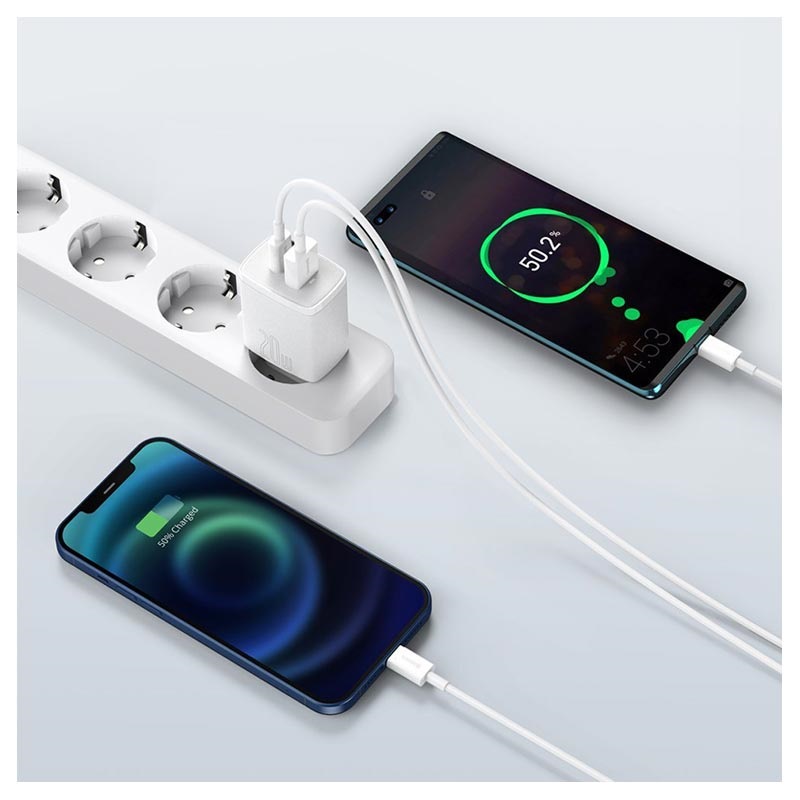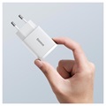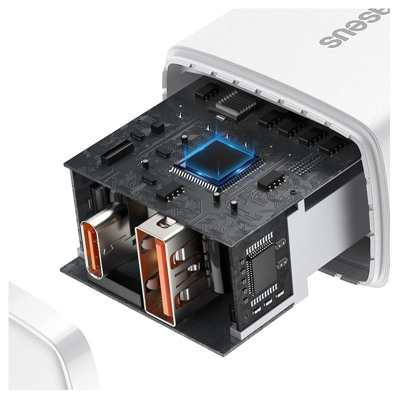 - Baseus Compact USB-C og USB-A hurtig strømadapter med EU-stik